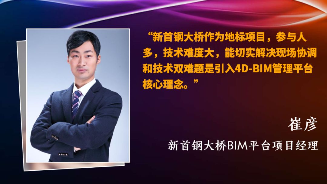 新首钢大桥项目应用4DBIM实现了基于BIM的施工进度、资源与设备、安全与质量、安防与监控、场地与设施的4D集成管理、实时控制和动态模拟。通过微信端、PC端和网页端的三端联动,基于IFC标准的4D-BIM模型,将建筑及施工现场3D模型与施工进度链接,与施工人员、资源、安全质量以及场地布置等信息集成一体。实现了基于BIM和网络的4D动态集成管理,为提高施工水平、确保工程质量提供了科学有效的管理手段。